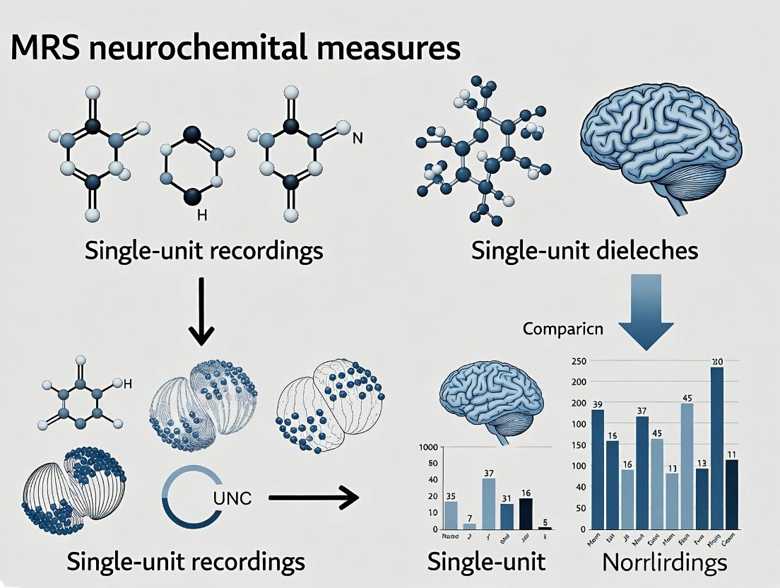 Within the context of a broader thesis on Magnetic Resonance Spectroscopy (MRS) neurochemical measures and single-unit recording contrast research, this guide provides an objective comparison for researchers, scientists, and drug development professionals. These complementary techniques offer distinct windows into brain function, from bulk neurochemistry to single-neuron activity.
