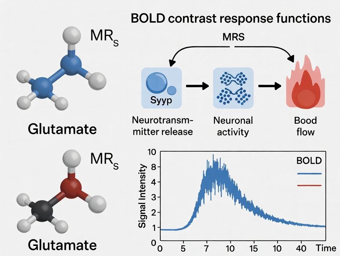 This article provides a comprehensive comparison of two fundamental neuroimaging modalities for assessing brain function: Magnetic Resonance Spectroscopy (MRS) measures of glutamate and functional Magnetic Resonance Imaging (fMRI) Blood Oxygen Level Dependent (BOLD) contrast. Targeted at researchers and drug development professionals, we explore the foundational neurophysiological principles linking glutamate dynamics to hemodynamics. We detail methodological approaches for acquiring and analyzing response functions, address common challenges in experimental design and data interpretation, and critically validate the complementary nature of these techniques. The synthesis offers a roadmap for integrating multimodal data to enhance the mechanistic understanding of brain function in health, disease, and therapeutic intervention.
