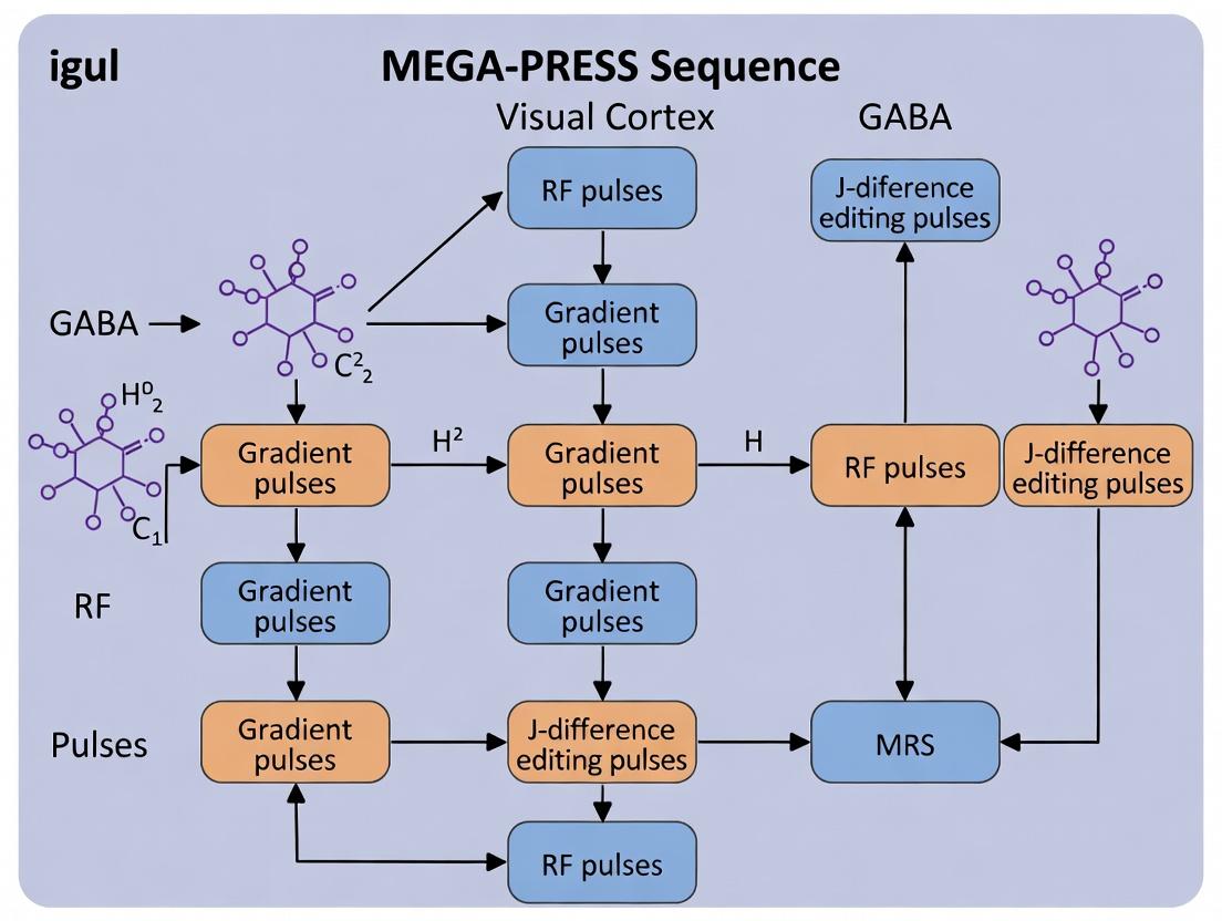 | MEGA-PRESS MRS Sequence | Enables selective detection of GABA in vivo by spectral editing. | Siemens: svs_edit; Philips: PRESS with MEGA pulses. |